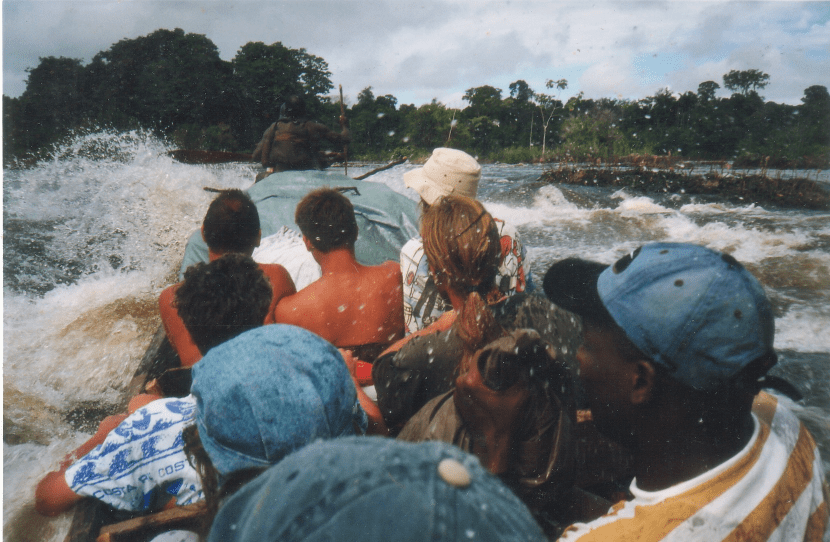 Comme aimantée par le fonds de la pirogue, je tente de fermer la porte à tout sentiment d’angoisse, mais en vain ! Le fleuve rugit, blanchit de colère, me gifle, envahit, inonde la pirogue, la tire et la pousse avec une force inestimée. J’arrête de respirer, quelques secondes d’apnée, le calme est revenu. Nous venons de franchir un saut.